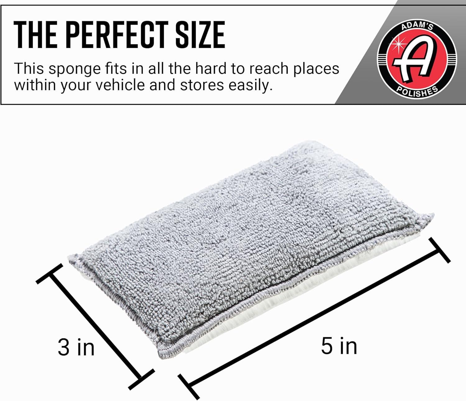 Adam’s Interior Scrubbing Sponge scrubs interior vehicle surfaces like plastic, leather, vinyl, and upholstery clean with the brush-like, bristle-type fabric. The firm but gentle fibers scrub deep into fabric pours and contours. Use in combination with Adam’s interior chemistries for an impressive deep clean of any interior surface. Spray your cleaning chemical directly into the bristles to control chemical usage and to prevent overspray on surfaces not being cleaned. Work small surfaces or large, this scrubbing sponge will make quick work of any dirty surface.