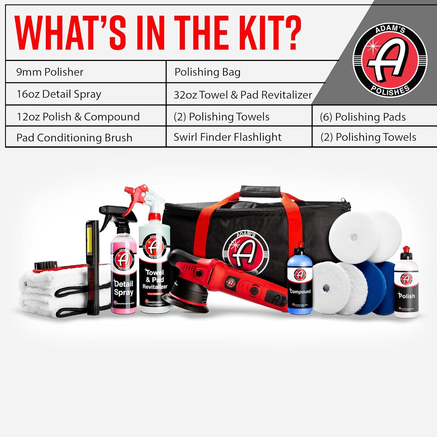 Adam’s Polishes 9mm Dual Action Car Polisher (Polishing Kit) – Buffer Car Scratch Remover for Car Detailing | Includes Polish, Compound & Pads(Polishing Kit (16 Item))