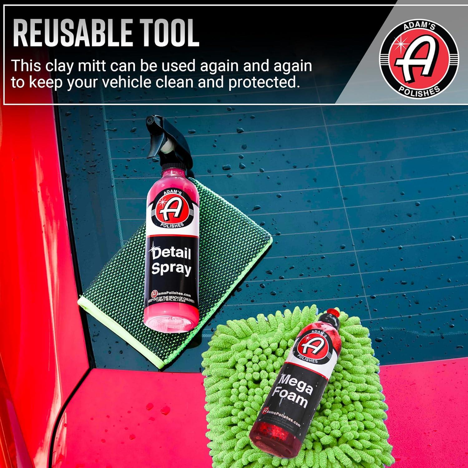 Adam’s Polishes Clay Mitt – Medium Grade Clay Bar Infused Mitt | Car Detailing Glove Quickly Removes Debris from Your Paint, Glass, Wheels, & More (Green – 1pk)(Green – Kit)