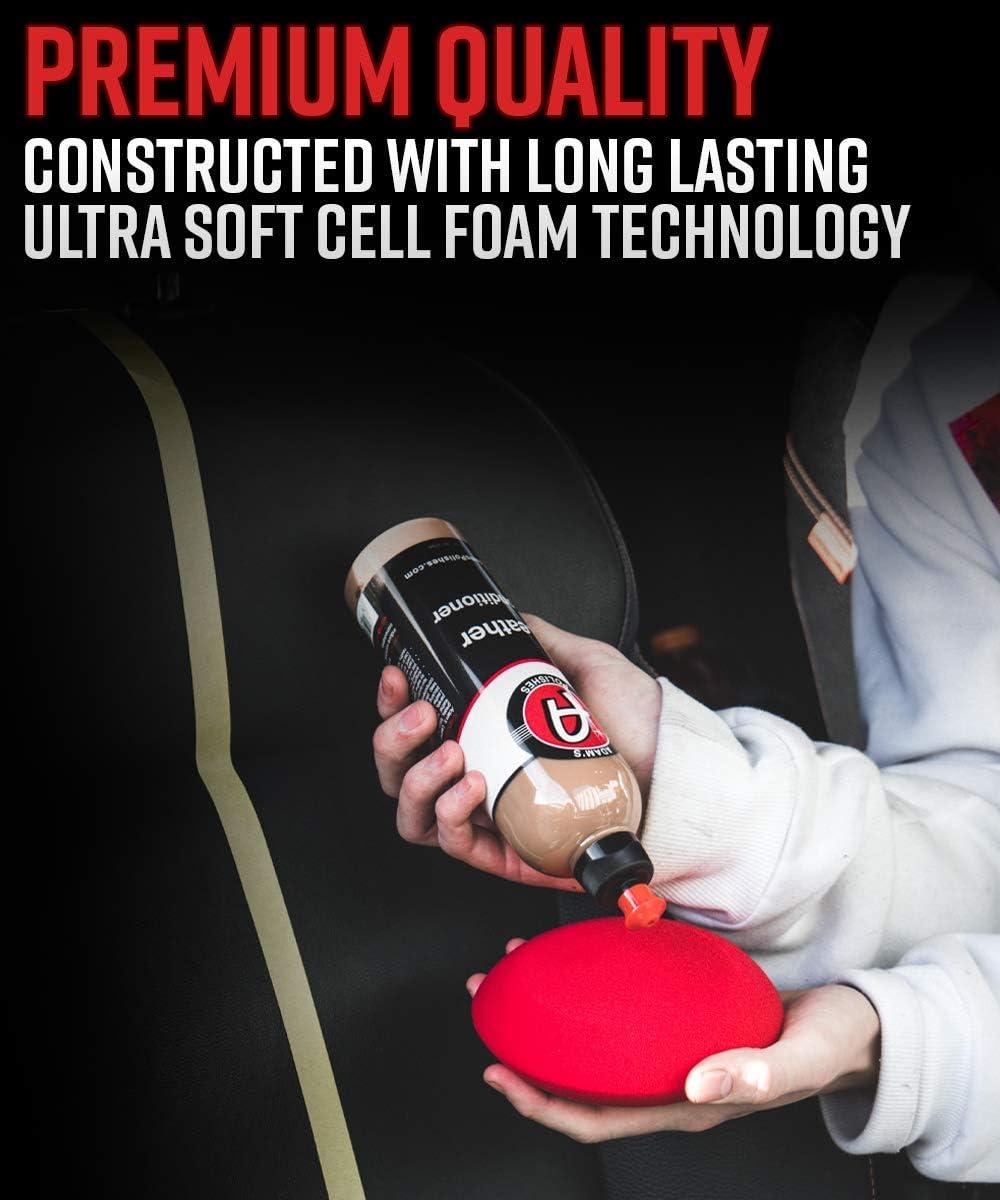 ✅ LARGE, NON-ABSORBANT LEATHER APPLICATOR PADS – Many applicators are poorly made and too absorbent, which results in wasted product usage, uneven coatings and more money needing to be spent. Instead of absorbing the product, our Interior Dressing Applicators push product towards your seats, not inside the sponge or on your hand.