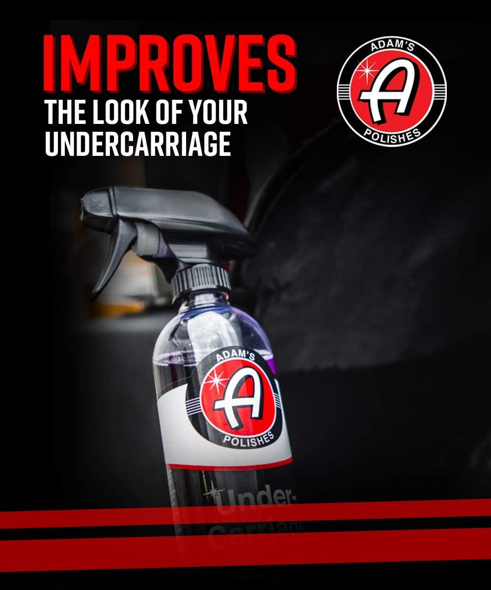 Adam’s Invisible Undercarriage Spray makes plastic and rubber look new again, shines painted surfaces, keeps aluminum and anodized parts from corroding as well as tires and bumper covers on any car, truck, motorcycle and more.