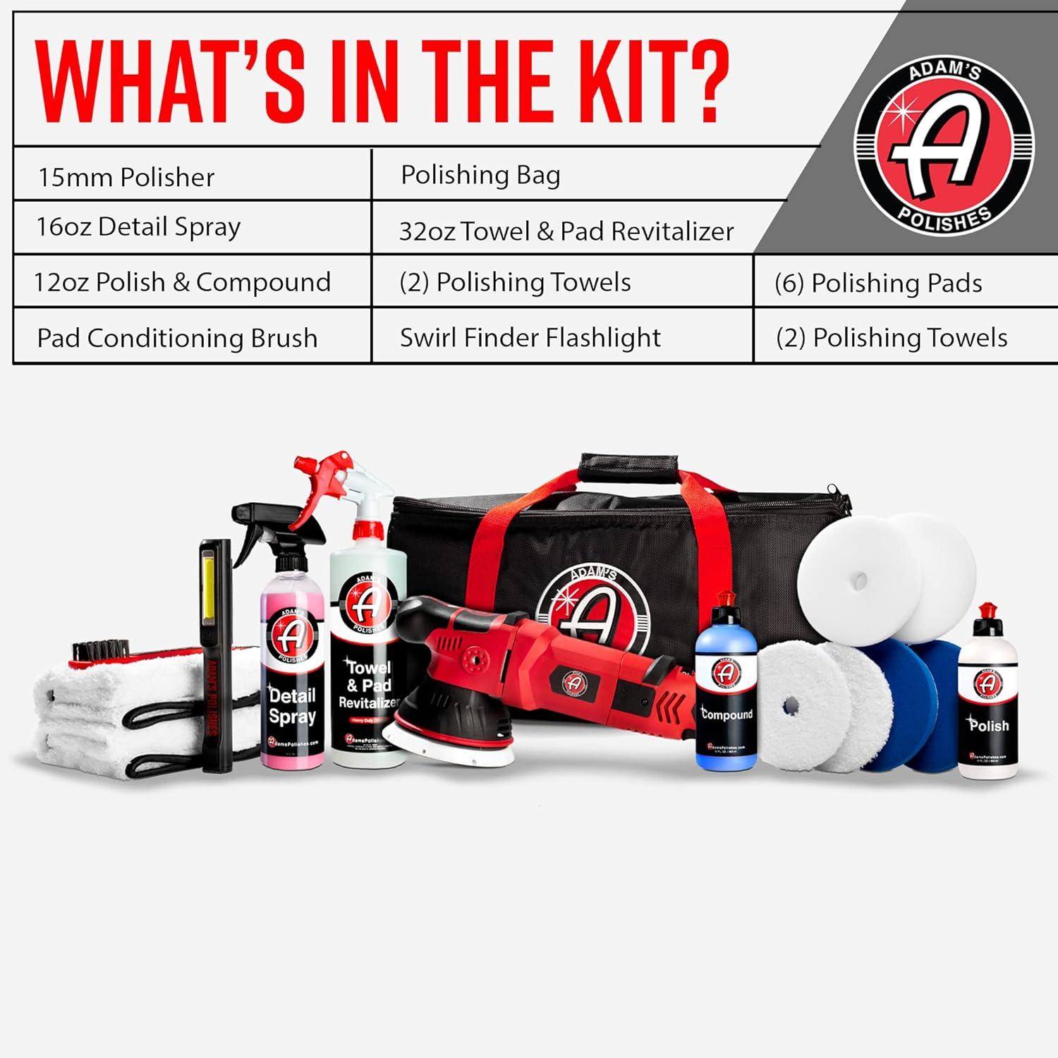 Adam’s Polishes SK Pro 15mm Car Polisher Kit 7 Item- Professional Buffer Polisher for Car Detailing | Use W/Car Polish, Polishing Compound, or Car Scratch Remover | Car Wash Clay Bar Ceramic Coating(15mm Polishing Kit (16 Item))