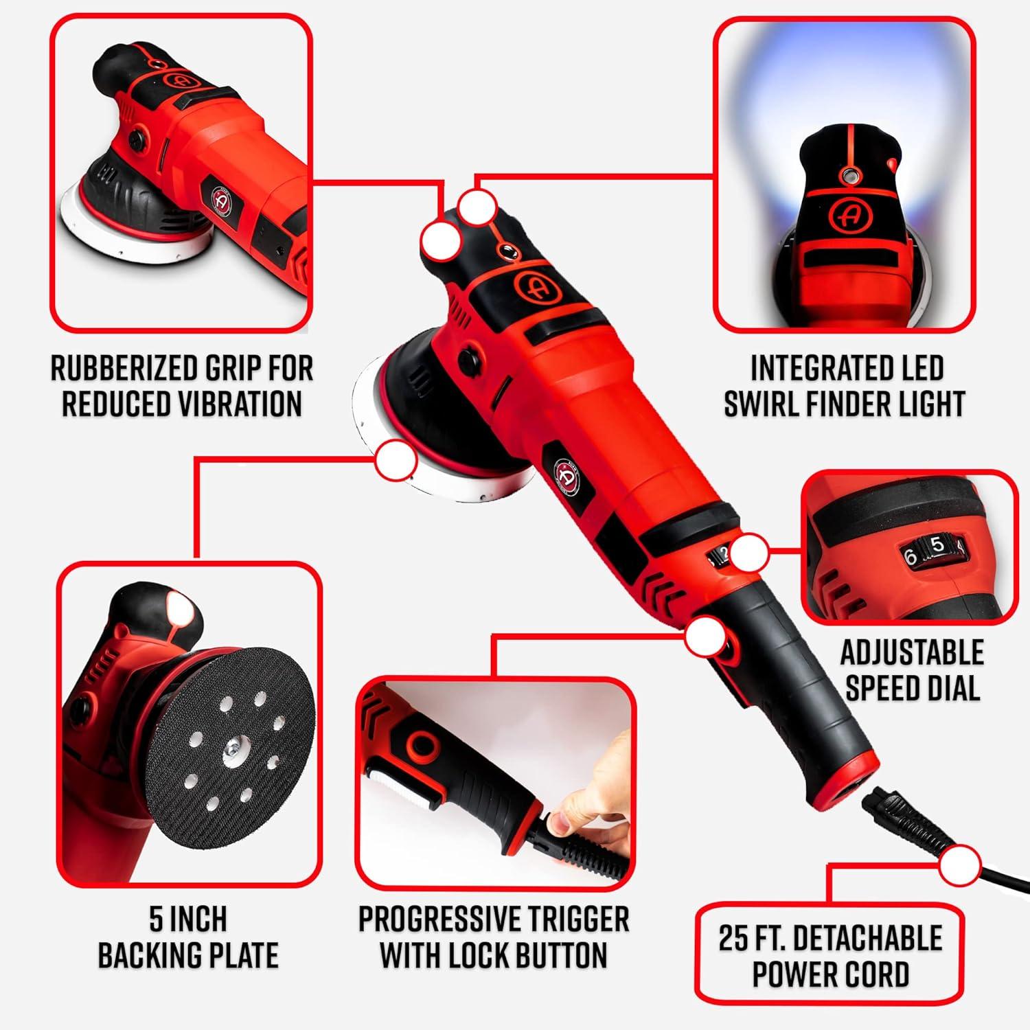 ✅ PATENT PENDING, INTEGRATED POLISHING LIGHT, 25-FT. DETACHABLE CORD – Adam’s Swirl Killer Pro is a full-sized, paint perfection tool. After months of research and development, the Swirl Killer Pro was engineered to reduce fatigue during your paint corrections, effectively correct paint, and increase your efficiency while doing so with the integrated polishing light.