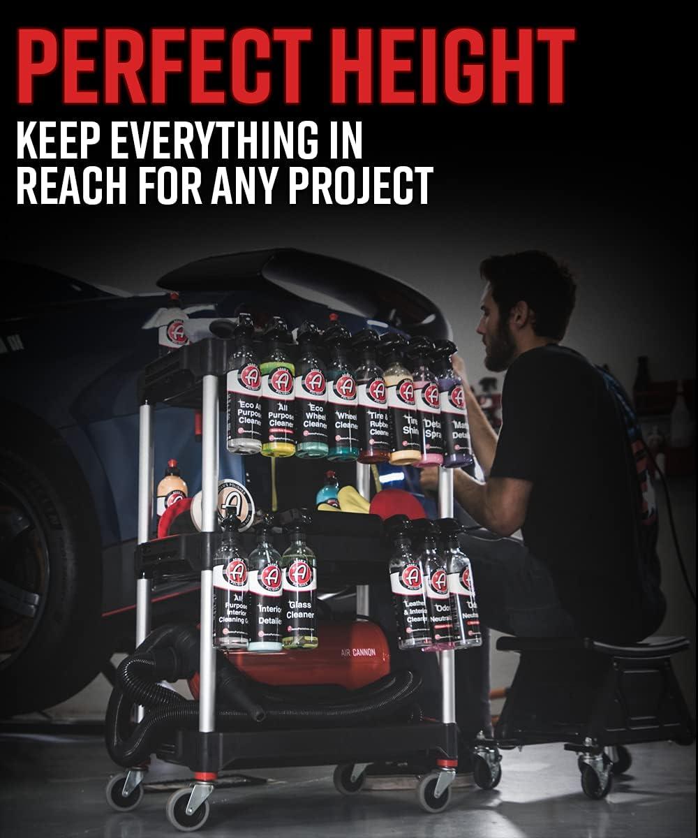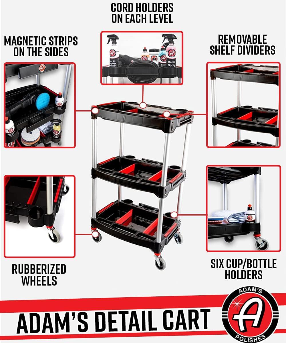 Adam’s Polishes Standard Detailing Cart, Custom Mobile Rolling Utility Detailing Tool Cart Organizer for Garage DIY Home Projects, Extra Storage for Mechanics & Detailers During Repairs Car Wash/Wax(Standard Detailing Cart)