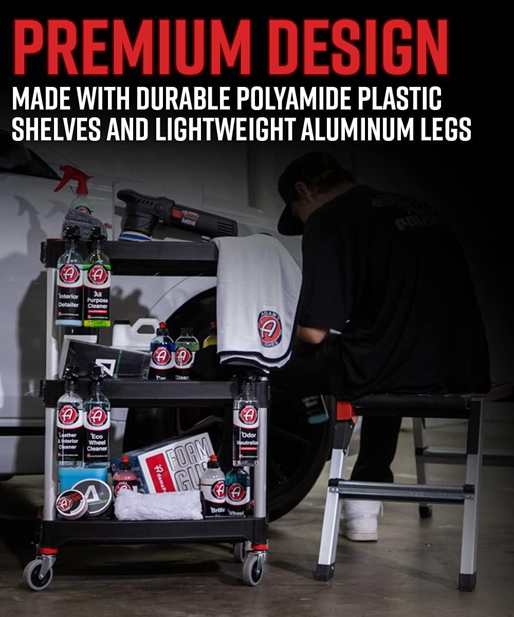 ✅ BUILD YOUR DETAILING ARSENAL OF GARAGE ACCESSORIES – Adam’s Line of accessories includes power tools, bottle organizers, mounts, stools, detailing seats, polisher stations & more. Every garage accessory is designed to provide simplicity and enhance your projects. This mobile rolling cart moves your bottles, drinks, cleaners, buffers & mechanical tools as you move.